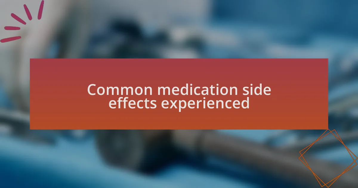 Common medication side effects can vary widely, but some tend to pop up more frequently than others. For instance, during one of my treatments, I grappled with fatigue that lingered for much longer than I anticipated. It was like dragging myself through a fog, and I wondered, have you ever experienced that overwhelming weariness that seems to seep into every part of your day?